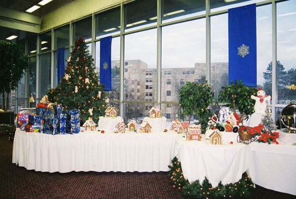 a carving station. I also designed a Chirstmas set up complete with a tree and a display of student made gingerbread houses.
