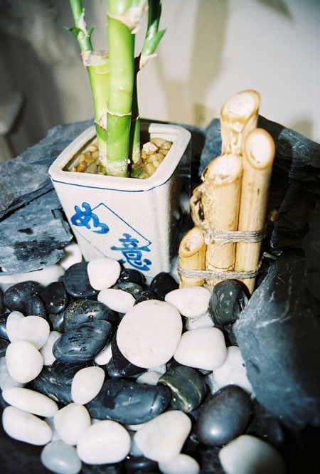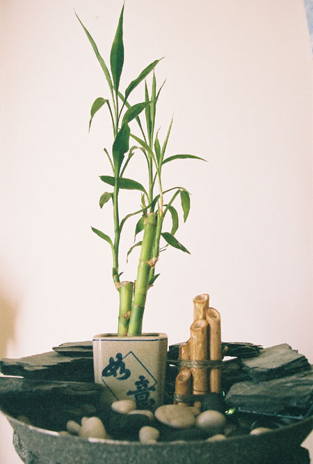 with a live bamboo plant
