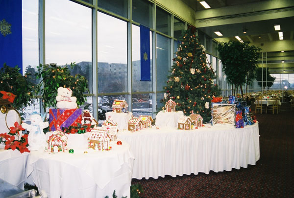 a carving station. I also designed a Chirstmas set up complete with a tree and a display of student made gingerbread houses.