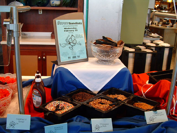 During the 2004 / 2005 academic year, I was responsible for several set ups and displays that included a dessert set up for D2's